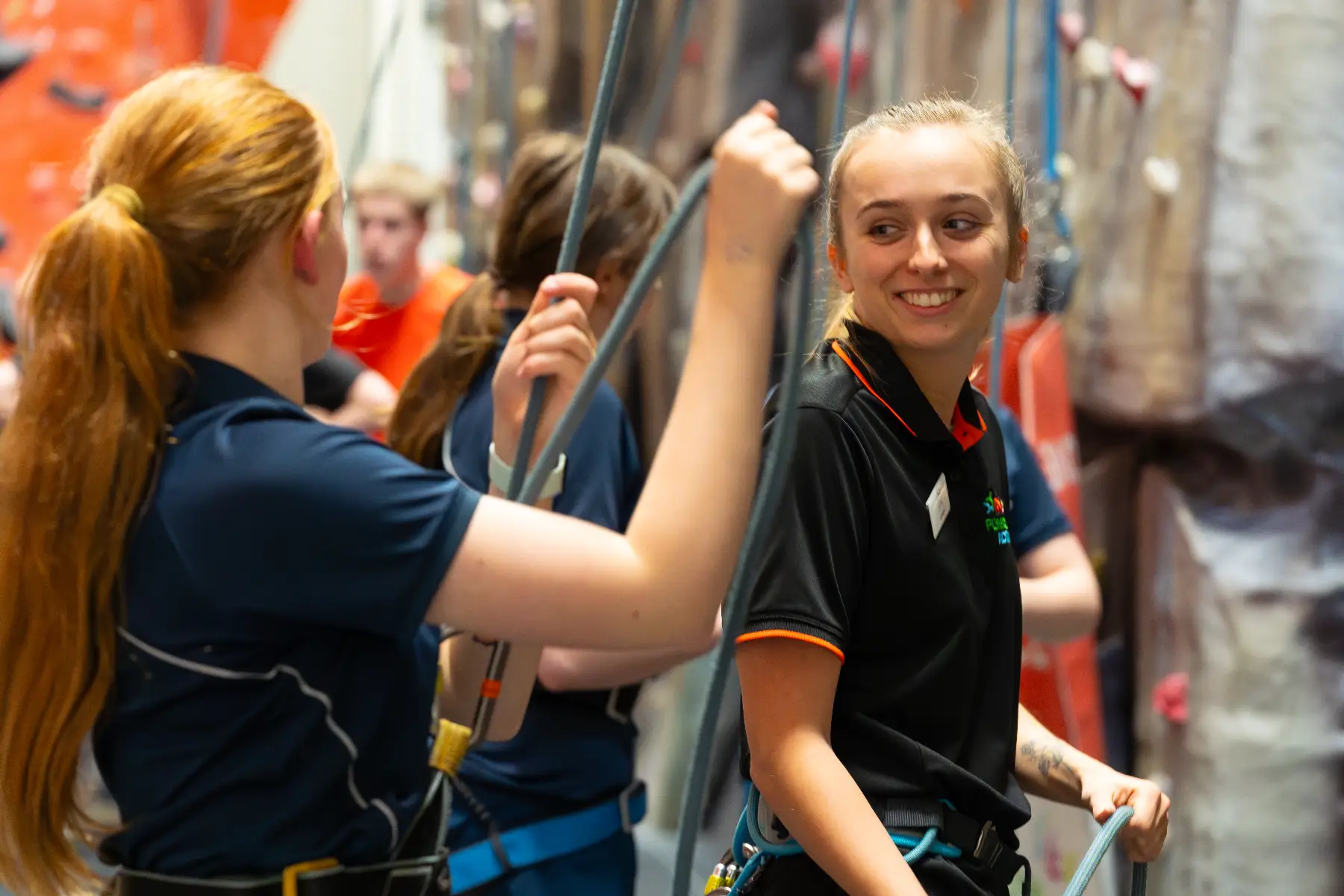 Sessions include: a warm-up, learning how to use the ropes, belaying, tying in, harness fitting, coaching and bouldering in our purpose-built bouldering room and a cool down.