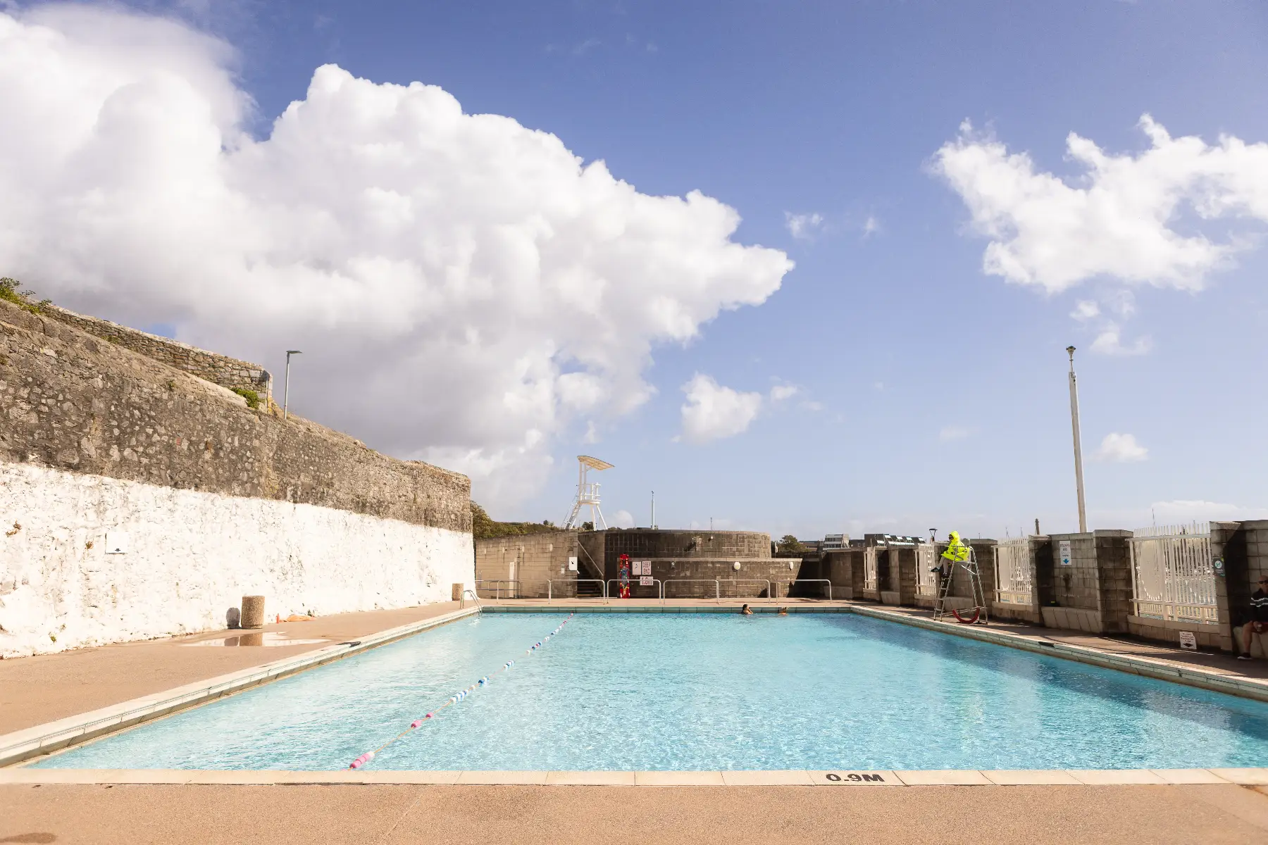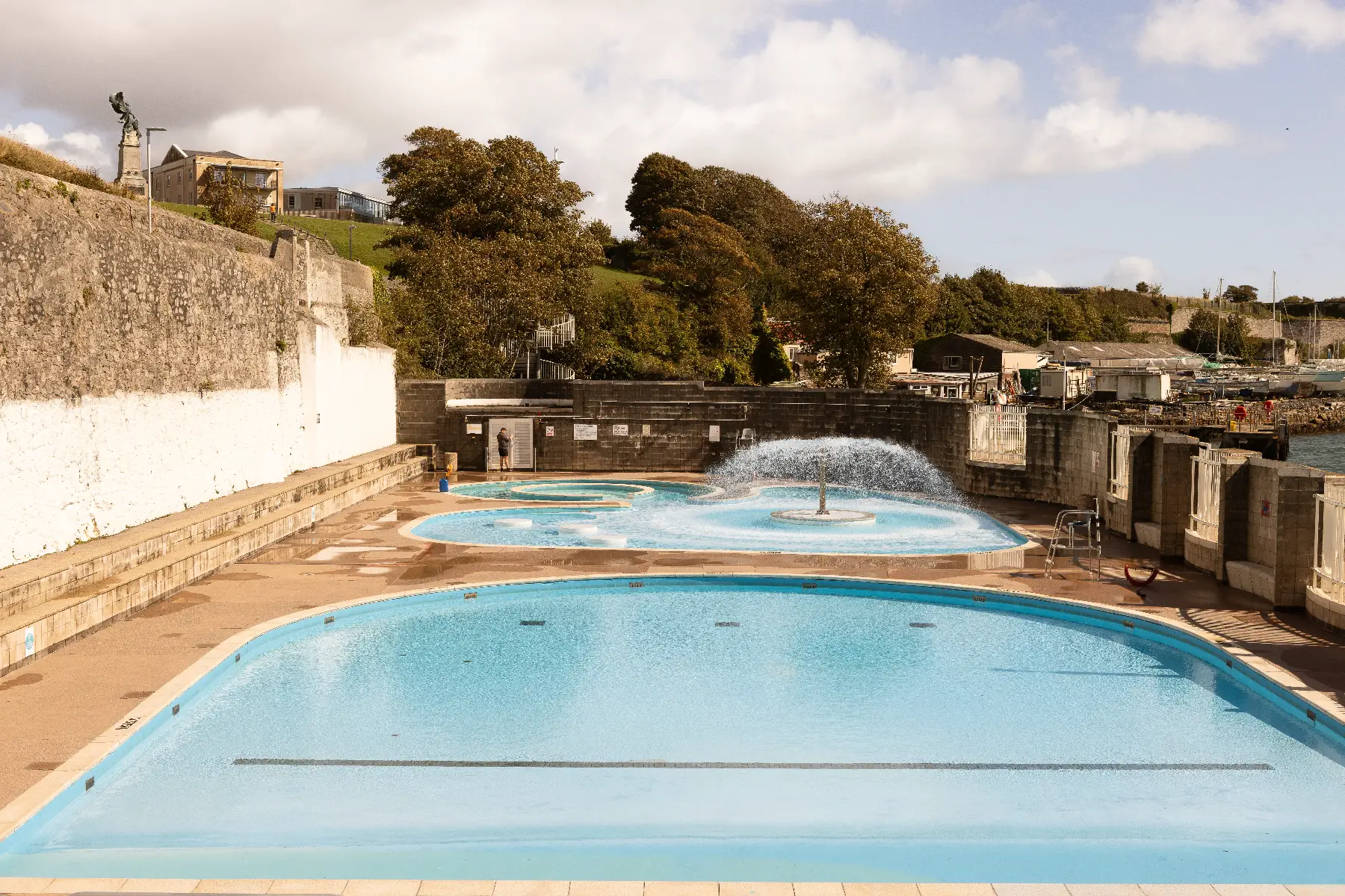 One of the best outdoor swimming complexes in the country, Mount Wise features three pools: a 25-metre main pool, a fun pool with fountains, stepping stones, a whirlpool, and a bubble pool, plus a paddling pool for children to build confidence in the water.